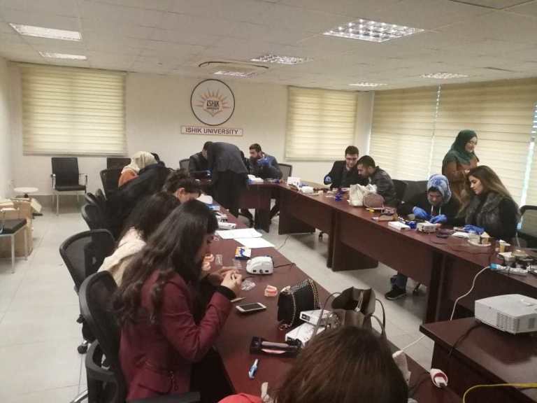 The workshop in brief: A Workshop under the title (Make posterior restorations fast and easy) held by professional dentist (Dr. Ali Al-Qrimli) on Saturday, March 30, 2019 for 30 5th-grade students which was sponsored by 3M company. There was a high interest in the Workshop, Dean of Faculty (Dr. Duran Kala) and Polyclinic director (Dr. Lezan Dawood) were attending the workshop too. Also, there was a group of newly graduated dentists from International Tishk University that had been invited to participate in our workshop.