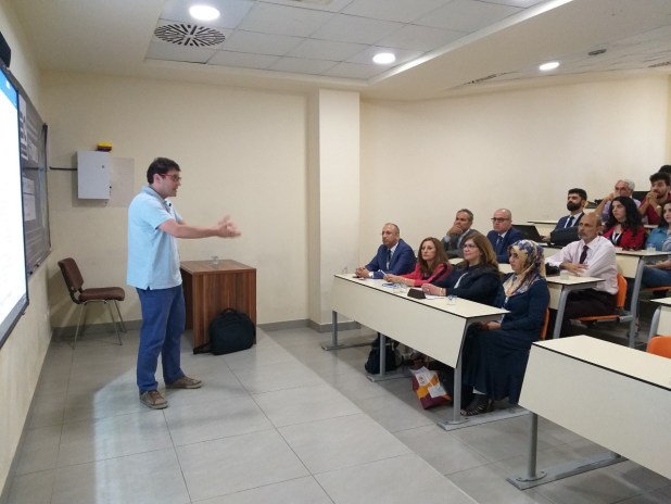 In the followed session, Prof. Cesare Oliviero Rossi, from the University of Calabria, Arcavacata, Cosenza, Italy presented the topic entitled “Physical Chemistry Characterization of modified Bitumen” in the presence of more than 40 academic staffs from different Universities in Kurdistan Region, and also students.